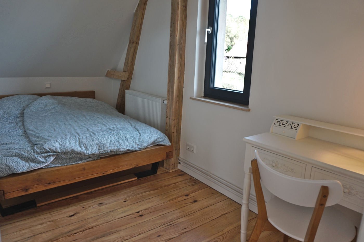 Im Hauptschlafzimmer befindet sich ein großes Doppelbett (2 mal 100 x 200cm), ein Kleiderschrank und ein Schreibtisch.